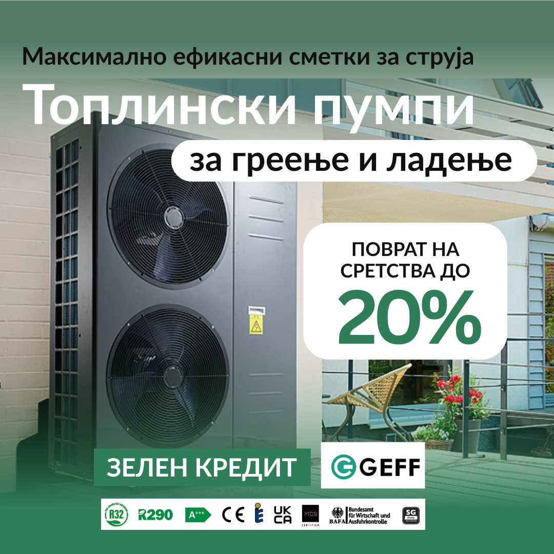 Доколку планирате да купите топлинска пумпа или друго енергетски ефикасно решение, програмите GEFF и GFF на Европската банка (ЕБОР) се една од најдобрите можности да ја намалите инвестицијата и да добиете поврат од 15% до 30%.